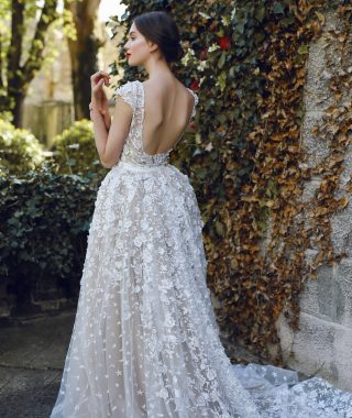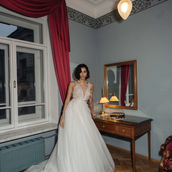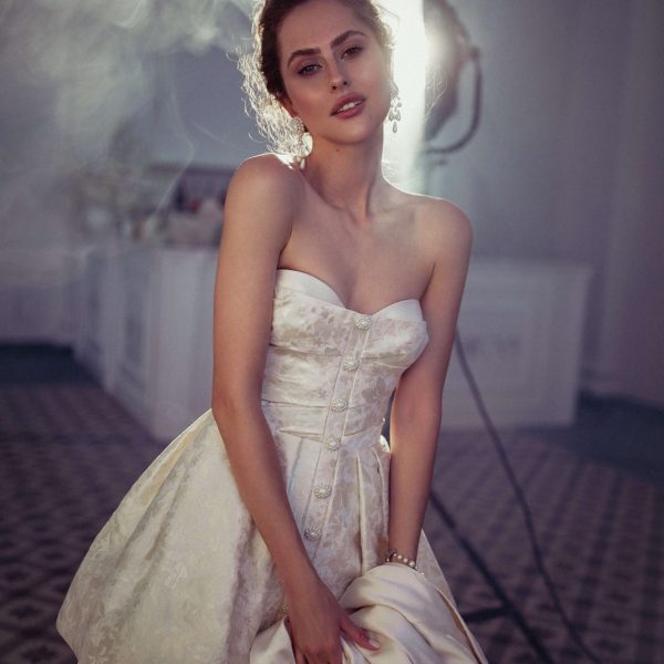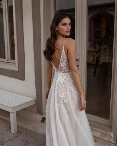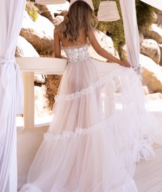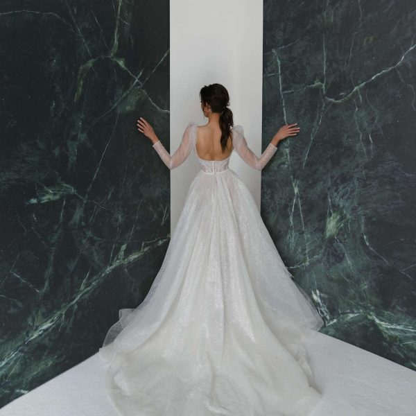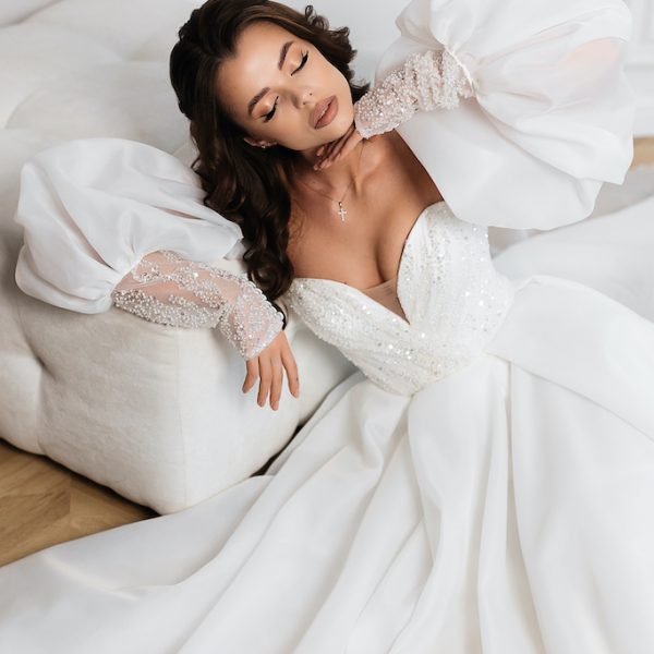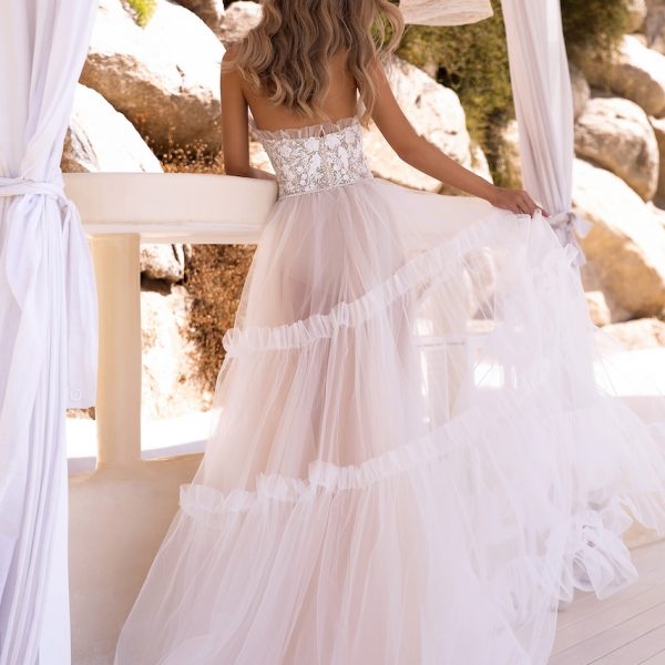 Ніжна весільна сукня із знімними рукавчиками та розшитим корсетом. Юбка виконана в напівпрозорій органзі.